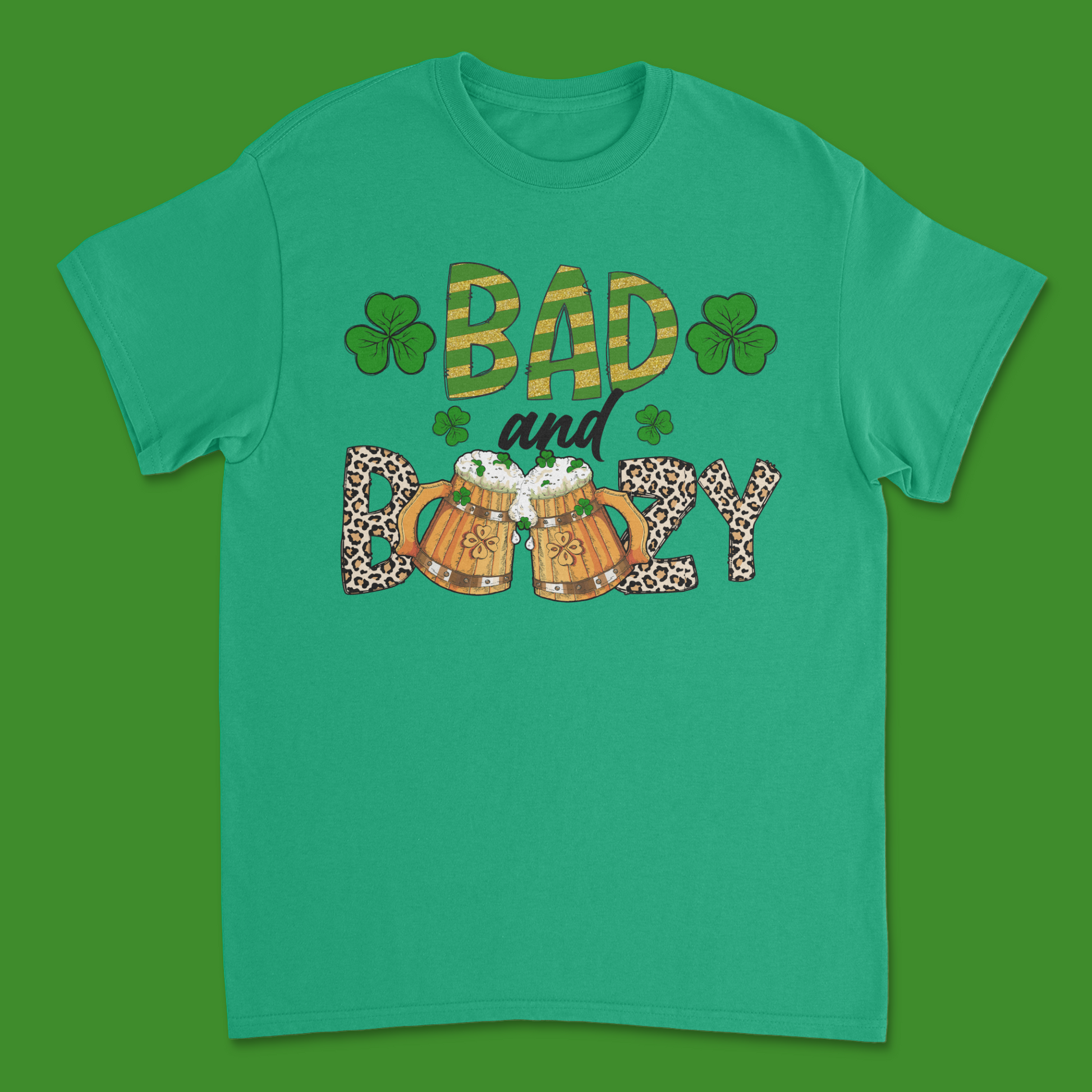 Get ready to turn up the fun with this "Bad and Boozy" tee! 🍀🍻 Perfect for St. Patrick’s Day celebrations, bar crawls, and wild nights out, this playful shirt features bold lettering with a festive touch. Made from soft, breathable fabric, it keeps you comfy while you sip, dance, and party the night away. Stay lucky, stay boozy! 💚✨
