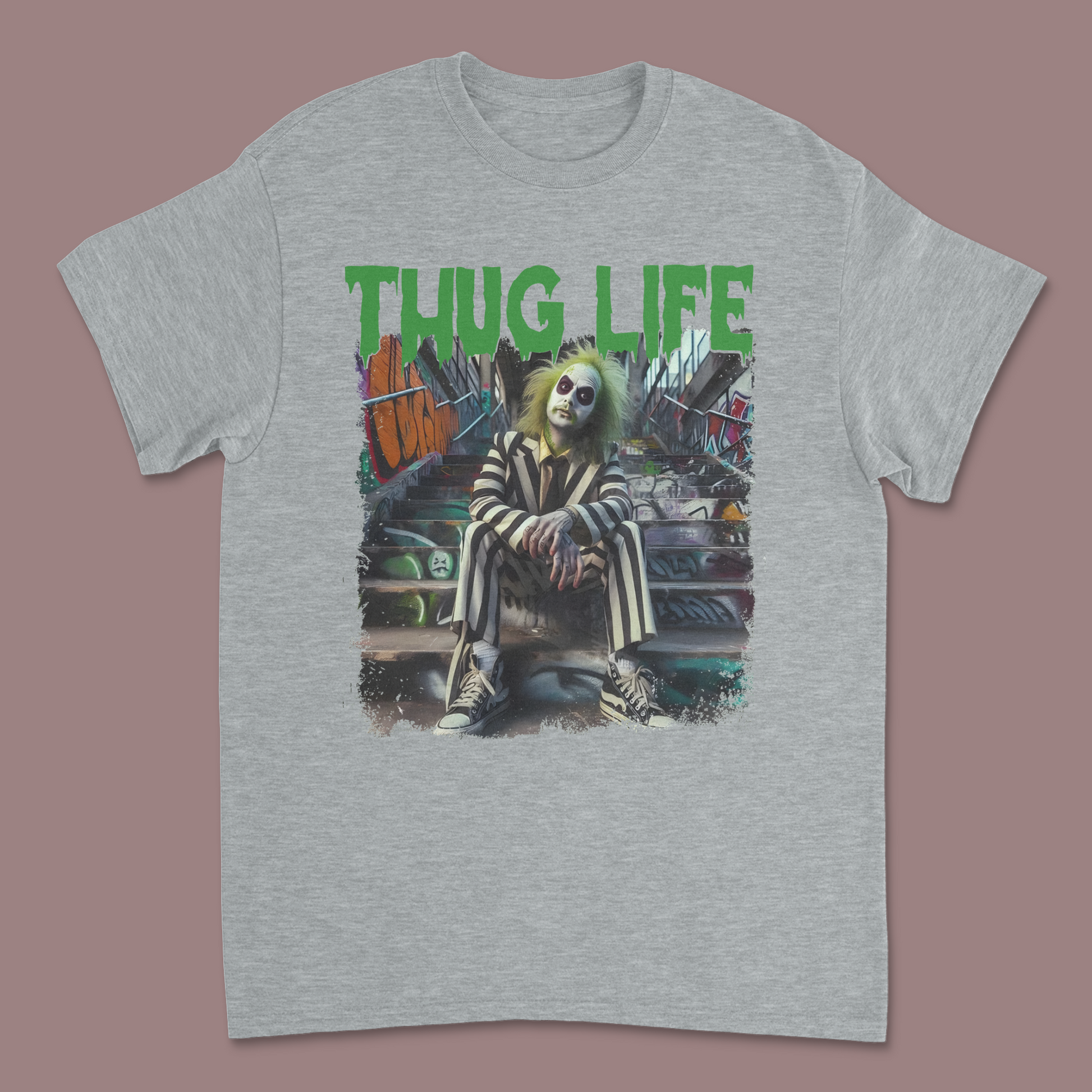 Order now to add this Beetlejuice "Thug Life" t-shirt to your collection, and make your wardrobe a little more strange and unusual!