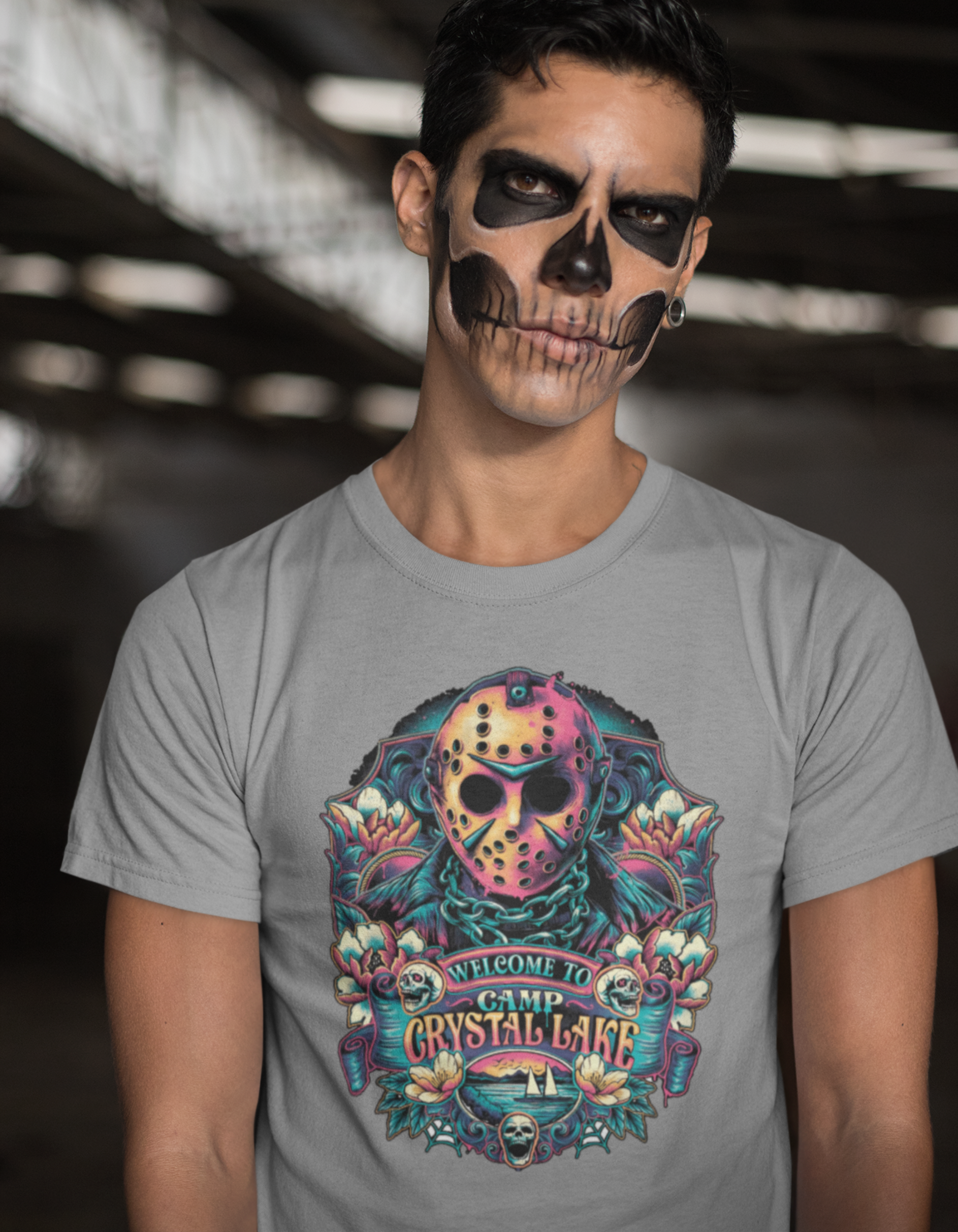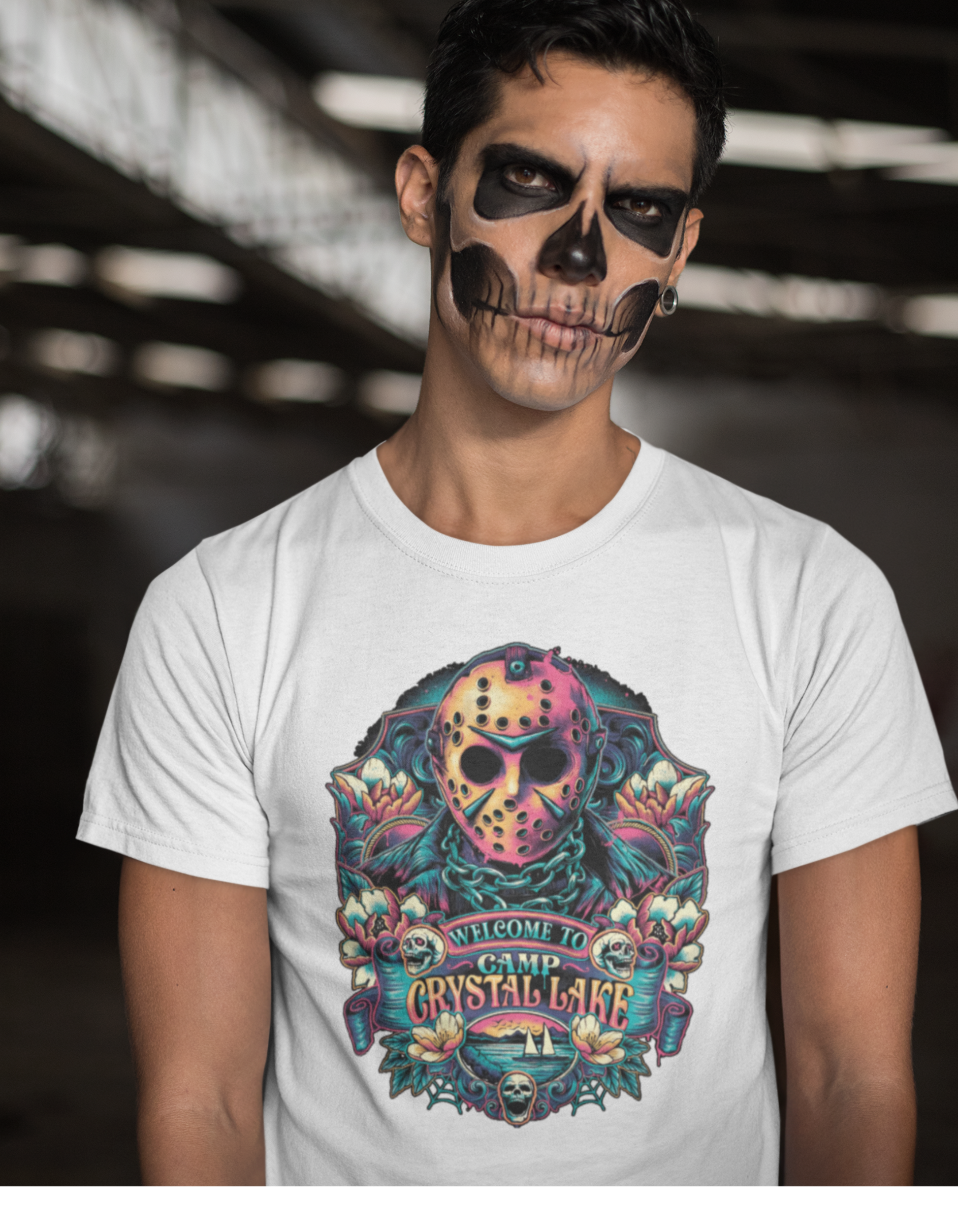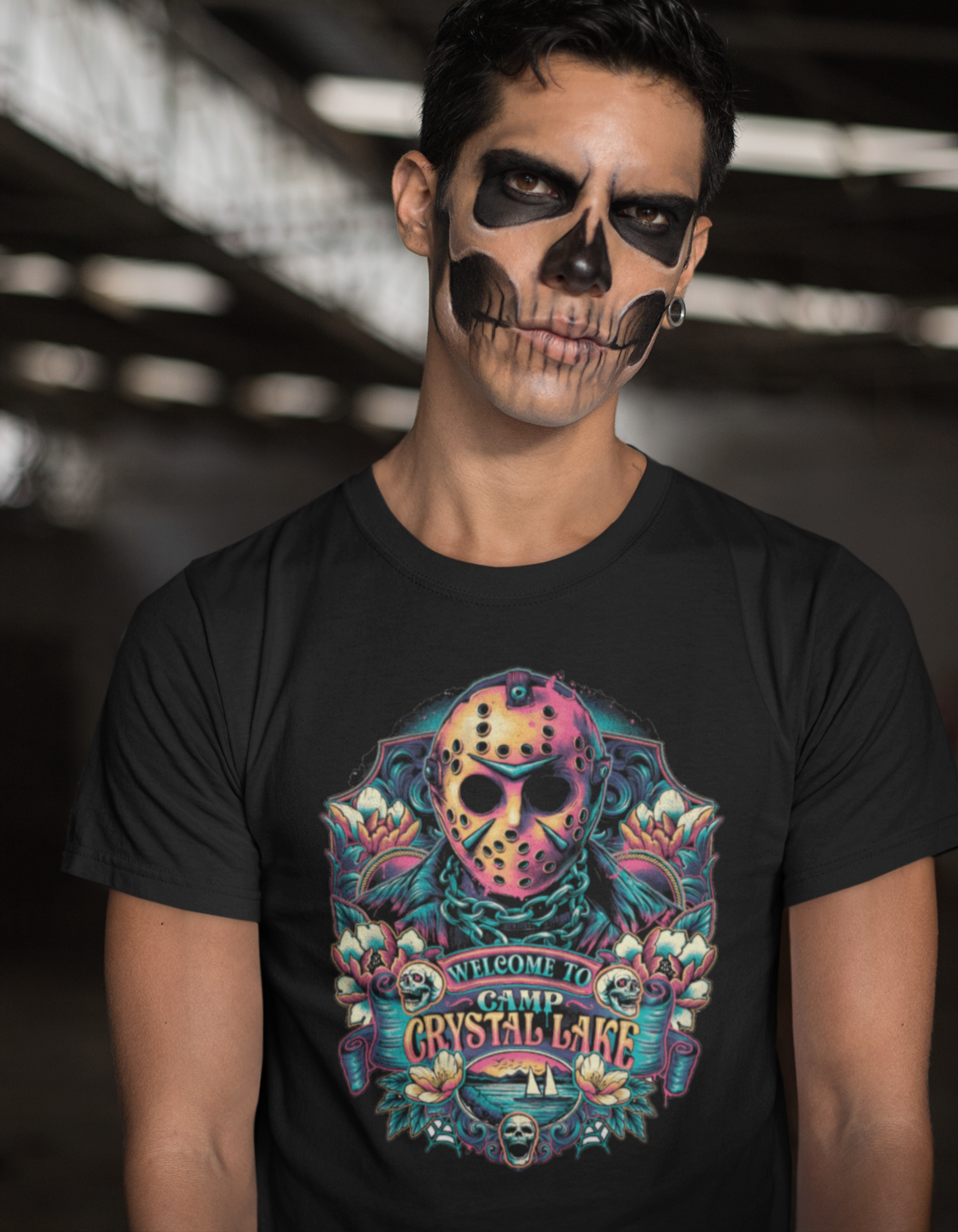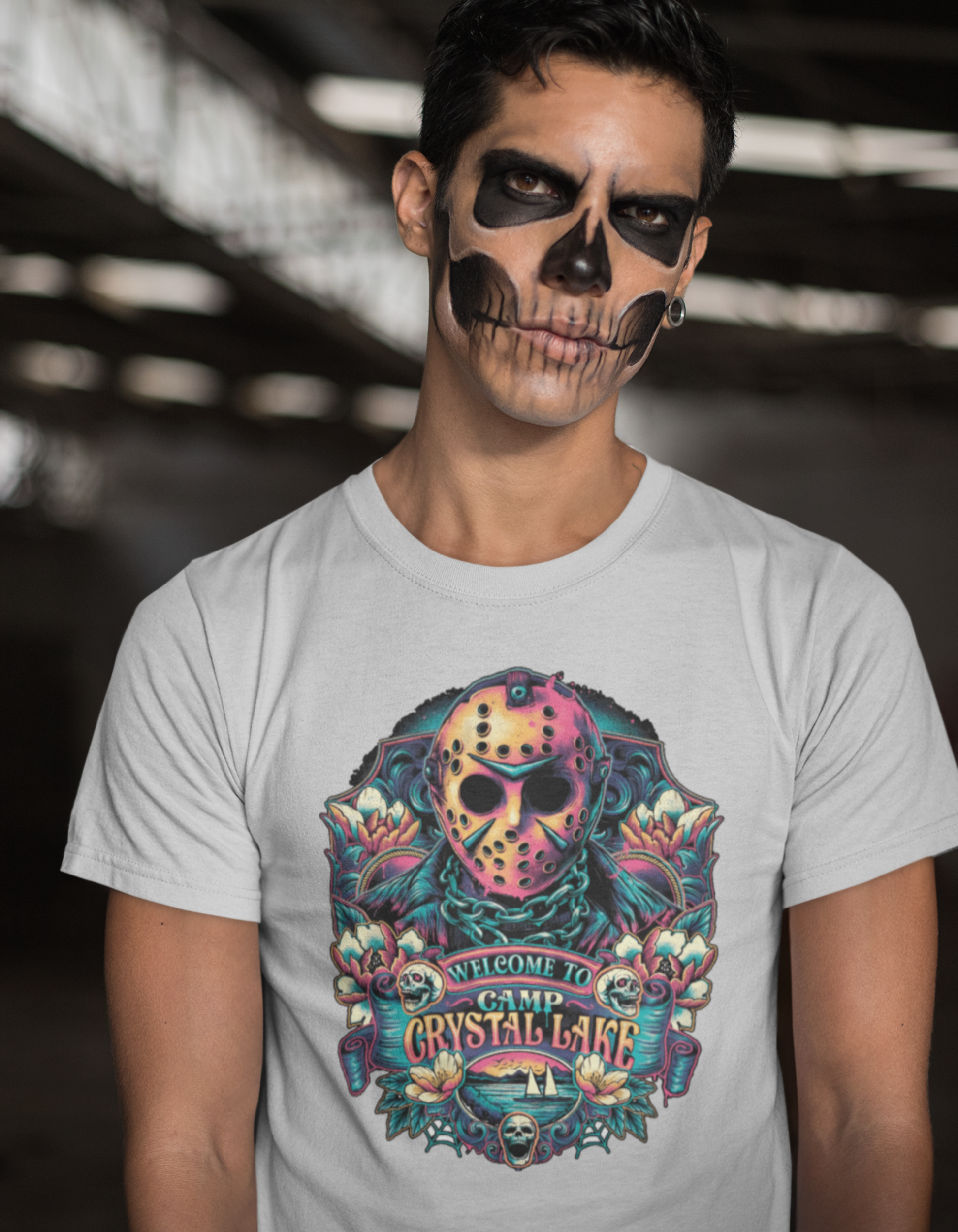 Get ready to dive into the eerie world of Camp Crystal Lake with this exclusive Camp Crystal Lake T-Shirt, a must-have for any true horror fan! Inspired by the infamous setting of the Friday the 13th series, this tee captures the chilling atmosphere of one of the most iconic horror locations in film history. Whether you're a die-hard Jason Voorhees fan or just love horror movie memorabilia, this shirt brings the terror of Camp Crystal Lake to life in style.