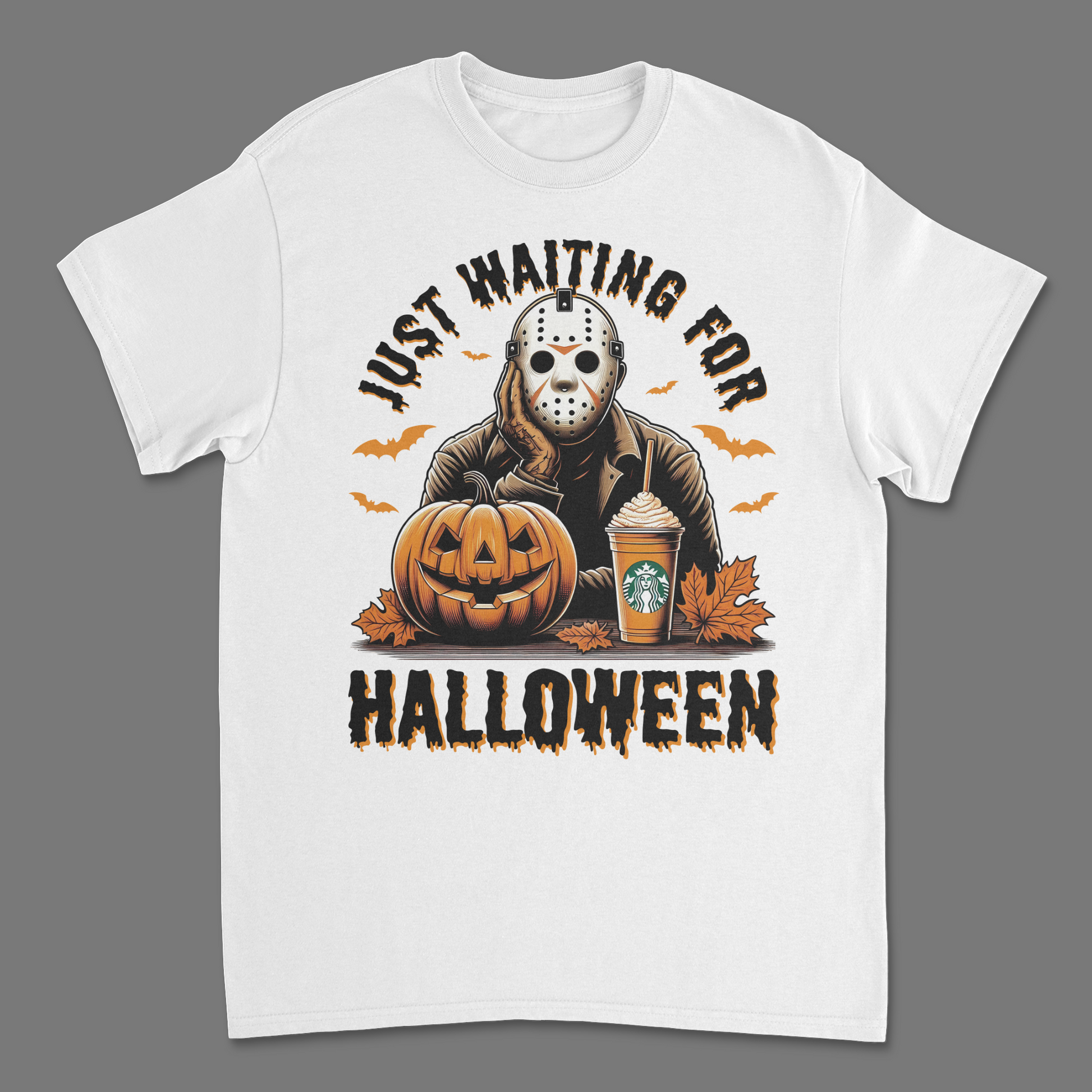 - Exclusive Jason Voorhees "Just Waiting for Halloween" design for the ultimate horror vibe