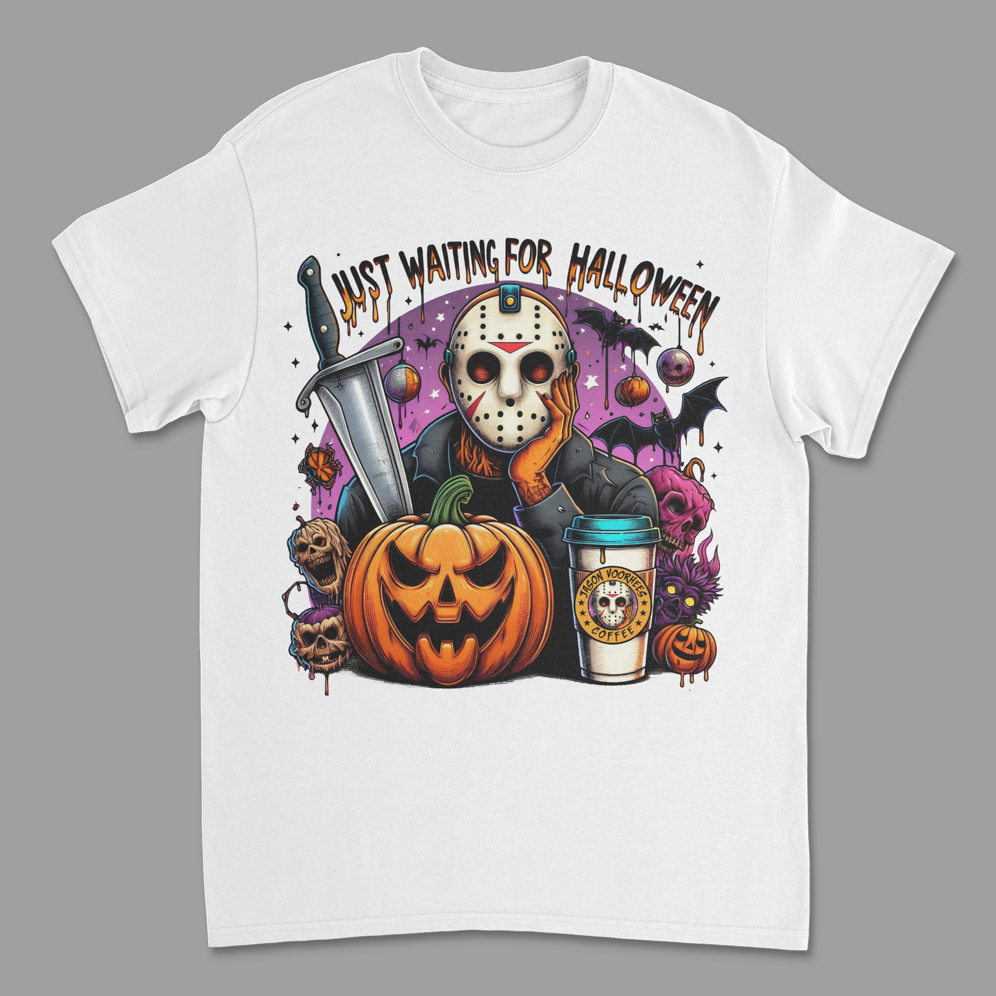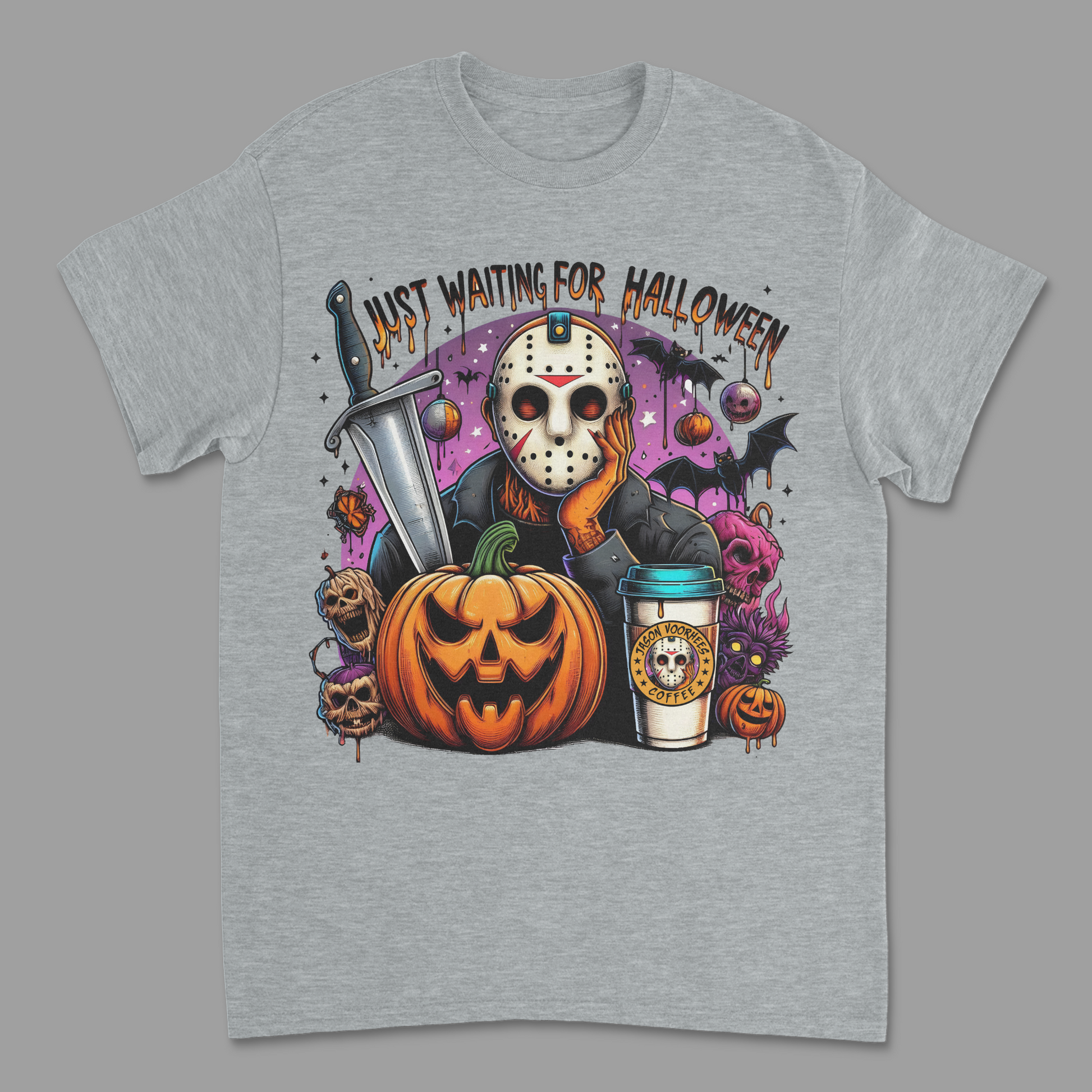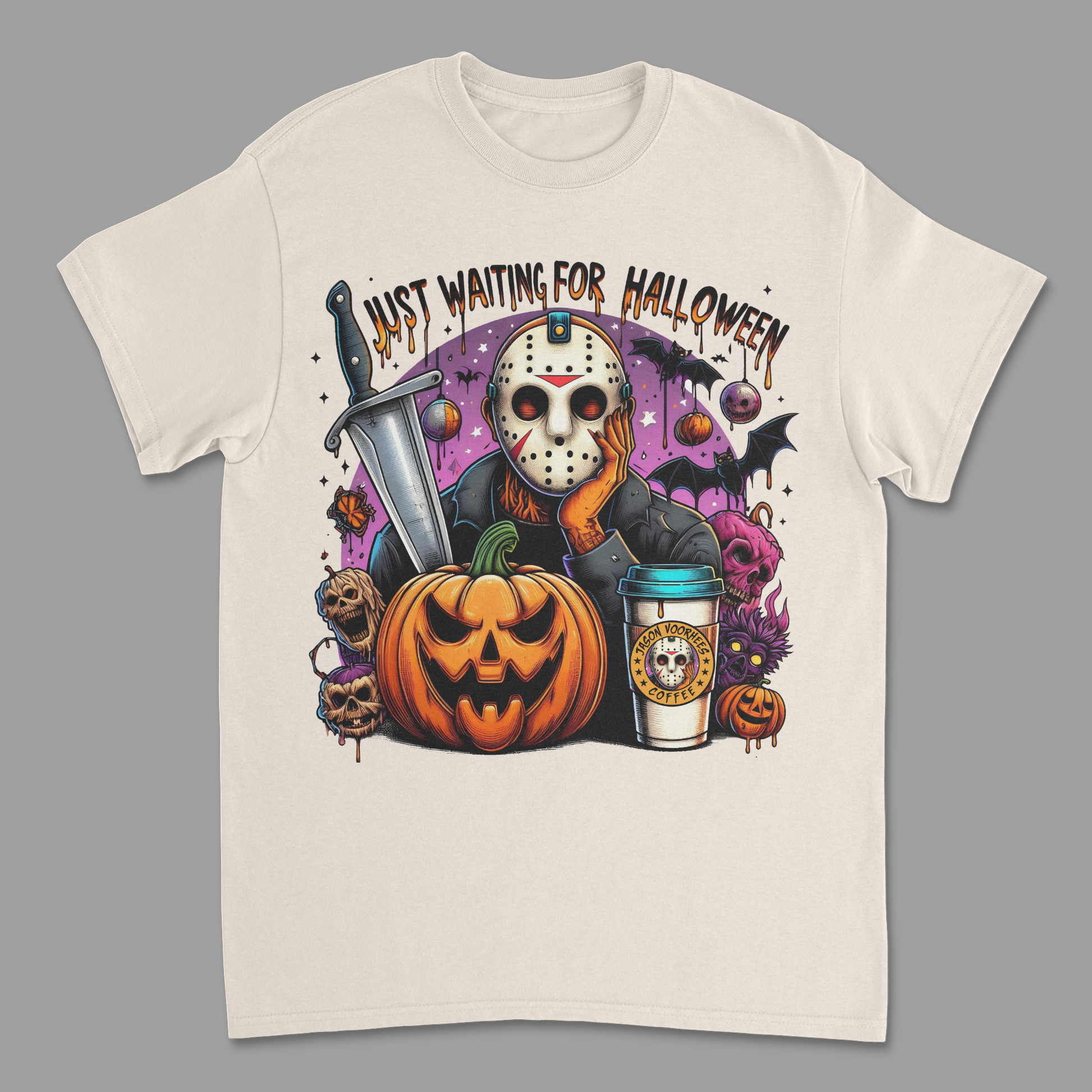 - Exclusive Jason Voorhees "Just Waiting for Halloween" design for the ultimate horror vibe