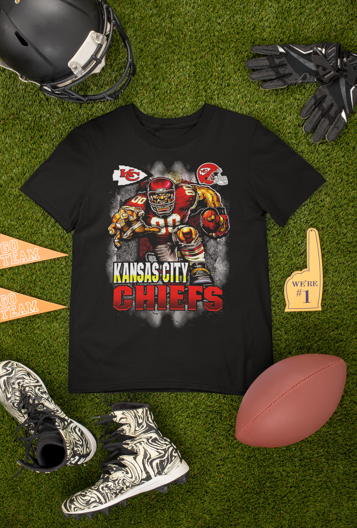 Product Description: Represent the reigning champions in style with our Kansas City Chiefs T-Shirt! Whether you're cheering on the team at Arrowhead Stadium or from the comfort of your couch, this shirt is perfect for displaying your love for the Chiefs. Featuring the iconic Chiefs logo and bold red, gold, and white colors, this t-shirt is a must-have for any dedicated member of the Chiefs Kingdom.