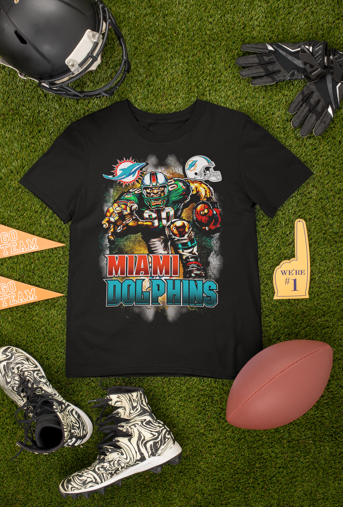 Product Description: Show your love for the Miami Dolphins with our Miami Dolphins T-Shirt! Whether you're catching the game at Hard Rock Stadium, hosting a watch party, or out and about, this shirt is the perfect way to represent your team. Featuring the classic Dolphins logo and the iconic aqua, orange, and white team colors, this tee is a must-have for every Dolphins fan.