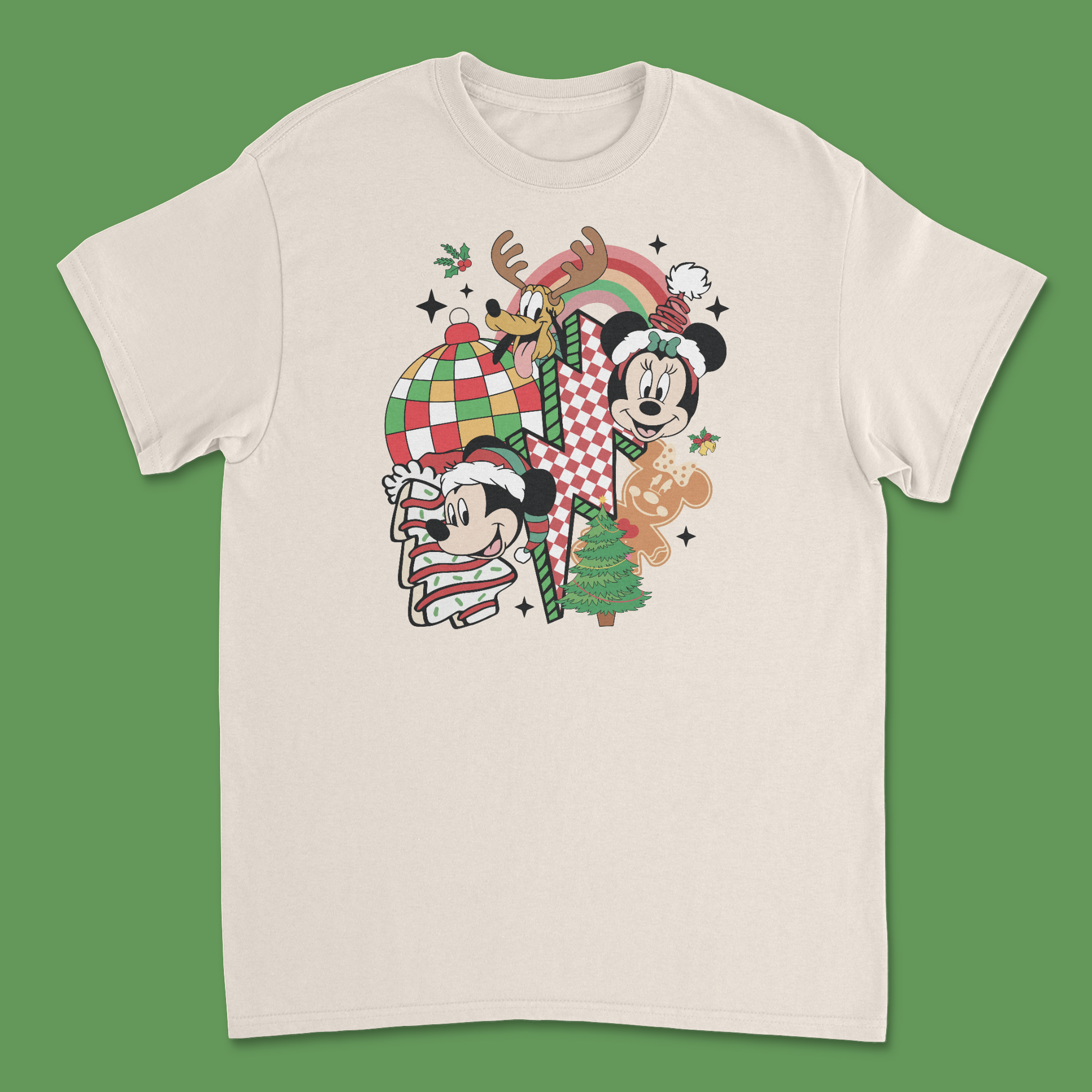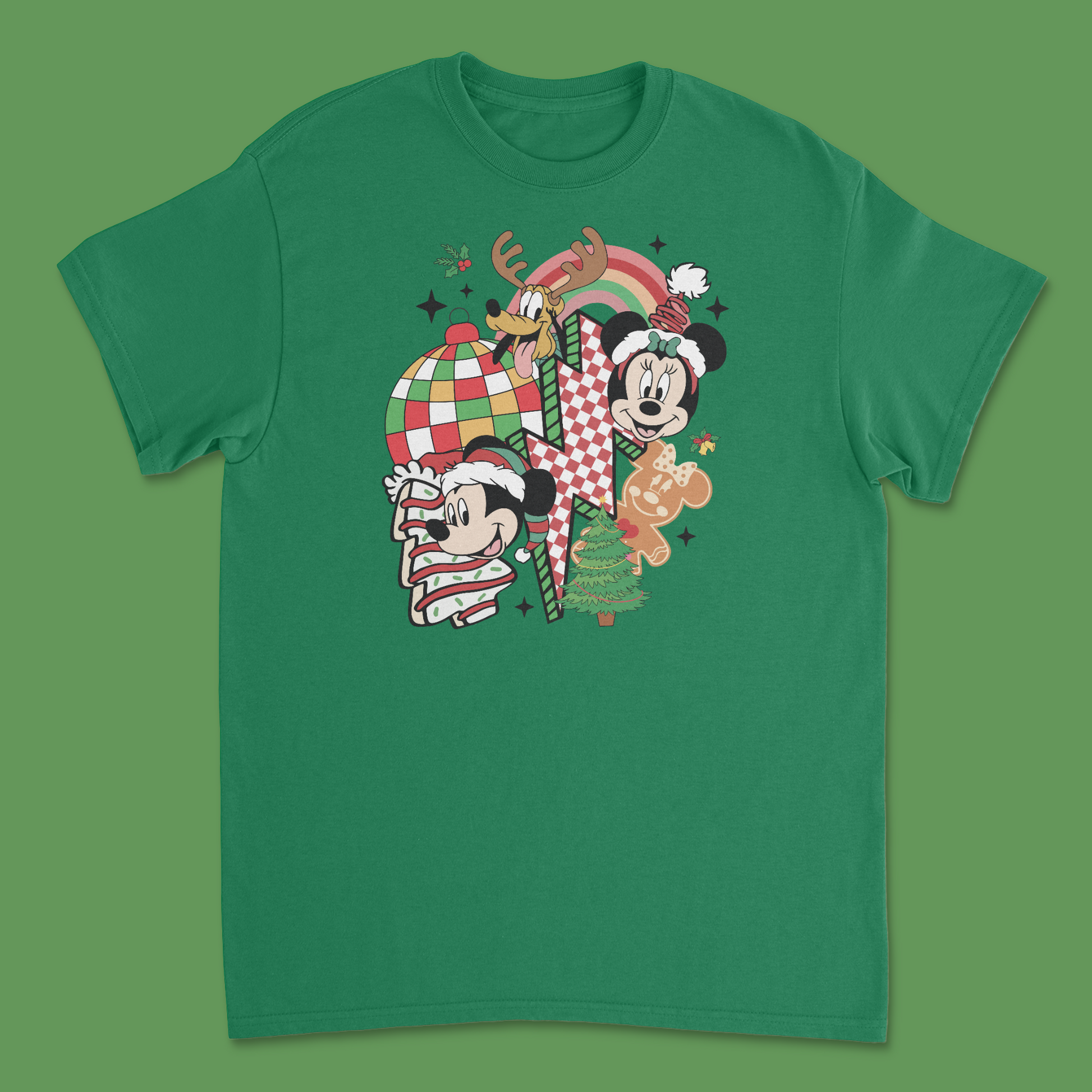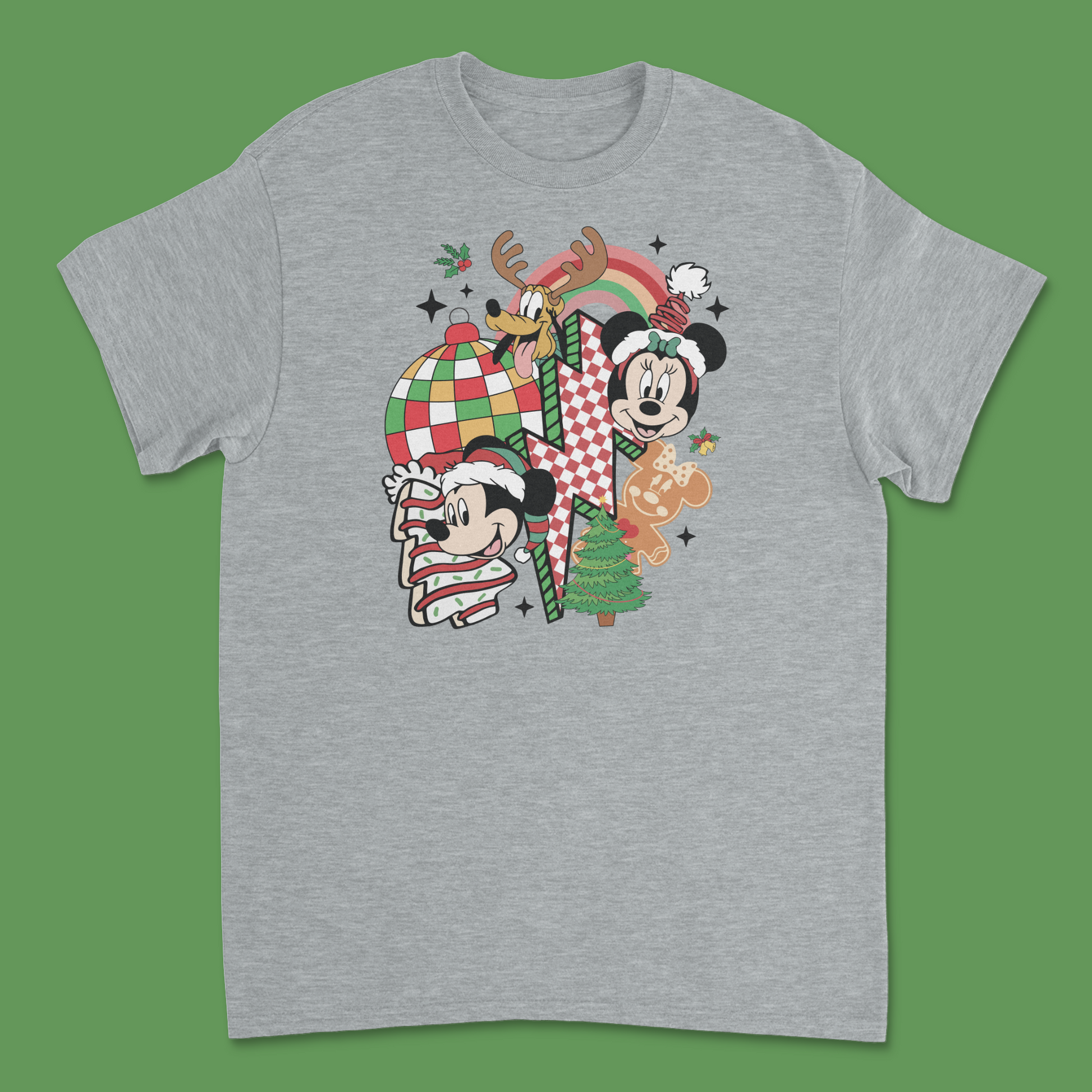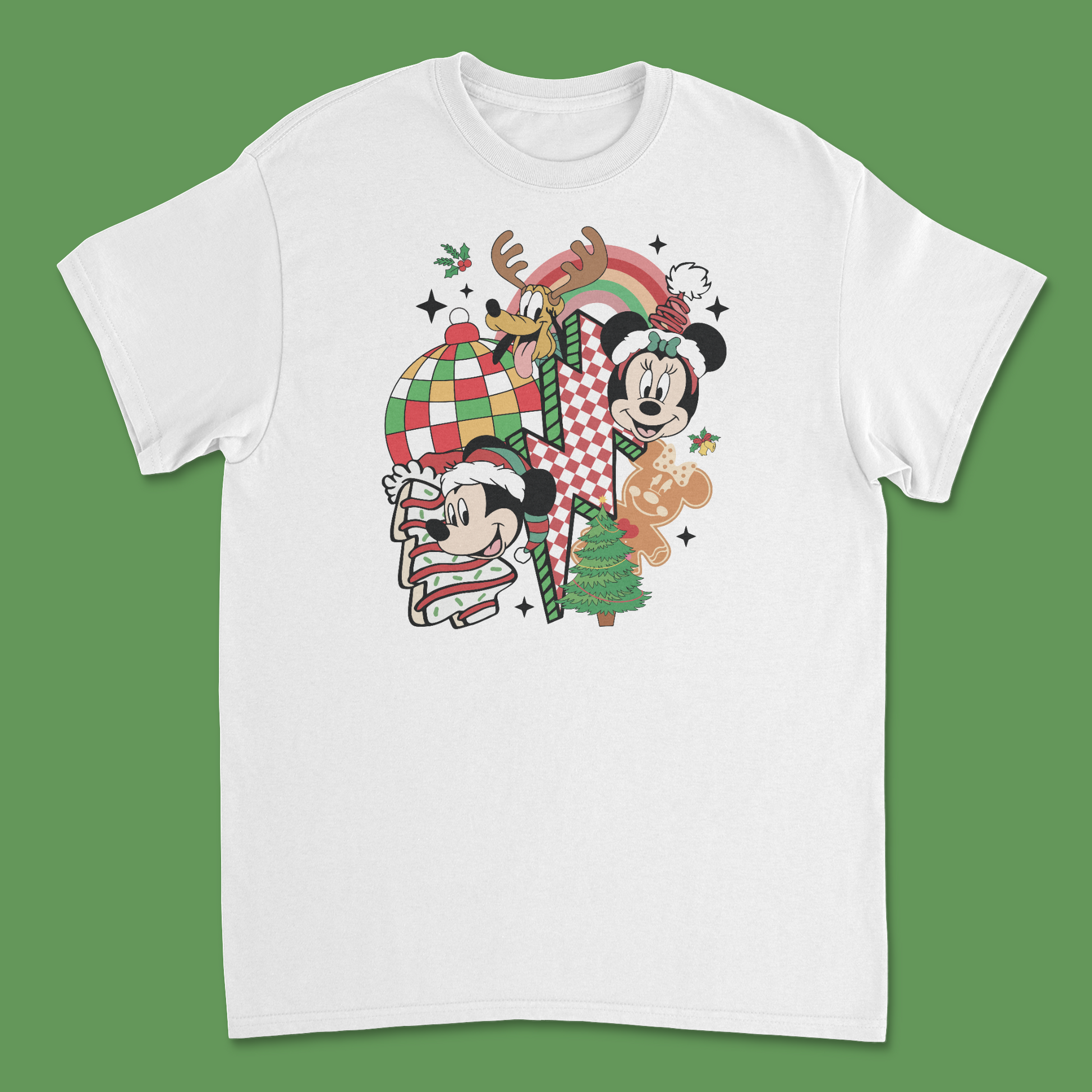 Get ready to celebrate the magic of the holiday season with our Mickey and Minnie Christmas Shirt! This charming graphic tee features the beloved Disney duo, Mickey and Minnie, dressed in their festive best, spreading holiday cheer to fans of all ages. Made from soft, high-quality cotton, this shirt provides maximum comfort, making it perfect for Christmas parties, family gatherings, or a magical day at a Disney park. The vibrant and fade-resistant design is sure to bring smiles and warm holiday vibes, making it an ideal gift for Disney enthusiasts or a festive addition to your own holiday wardrobe.
