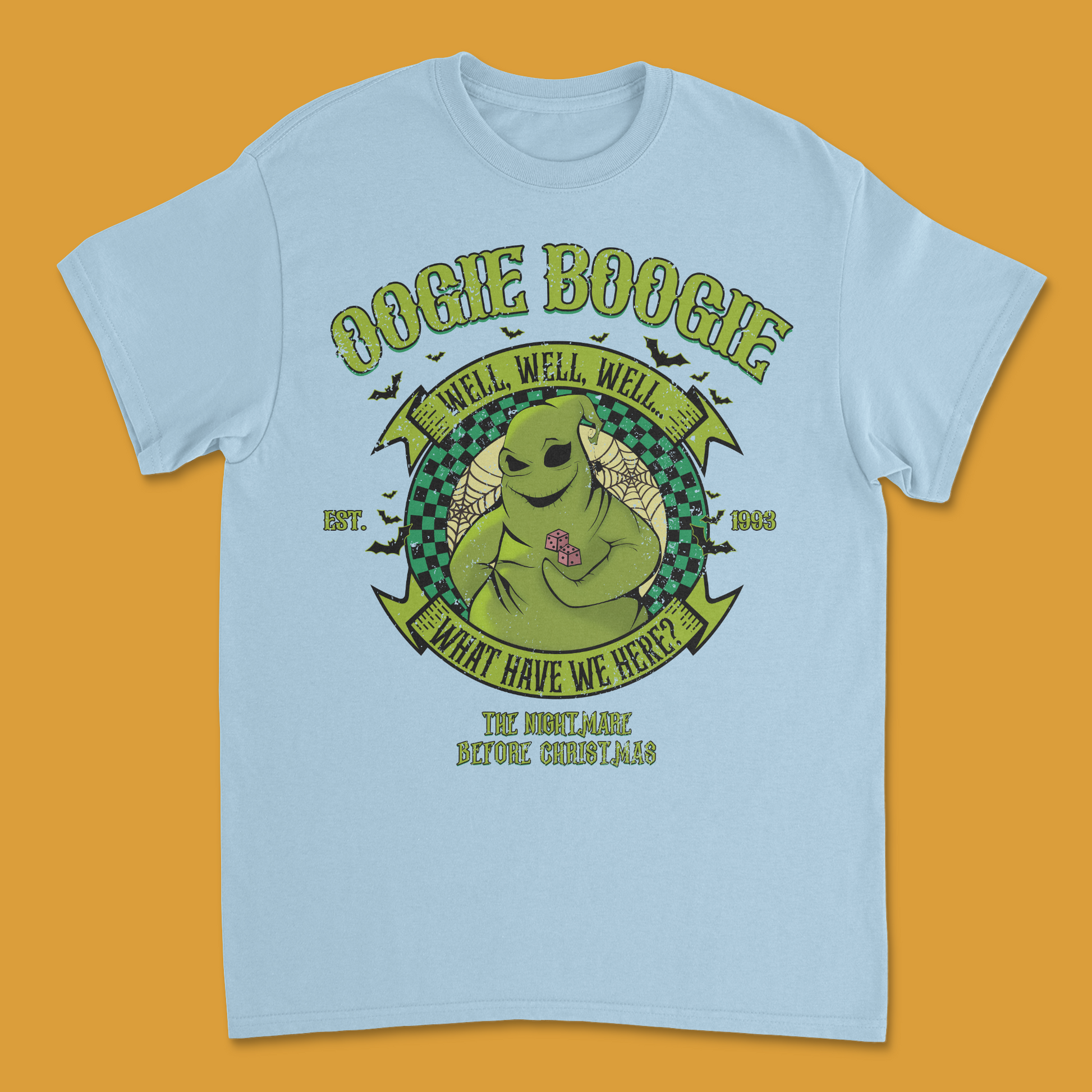 Step into the dark, twisted fun of Halloween Town with our Oogie Boogie T-shirt! Inspired by the infamous boogeyman from The Nightmare Before Christmas, this spooky tee features a bold design of Oogie Boogie that’s perfect for fans of the iconic character. Whether you’re a lover of all things spooky, planning a movie marathon, or dressing up for Halloween, this t-shirt lets you show off your love for one of the most memorable villains in a fun and fashionable way.