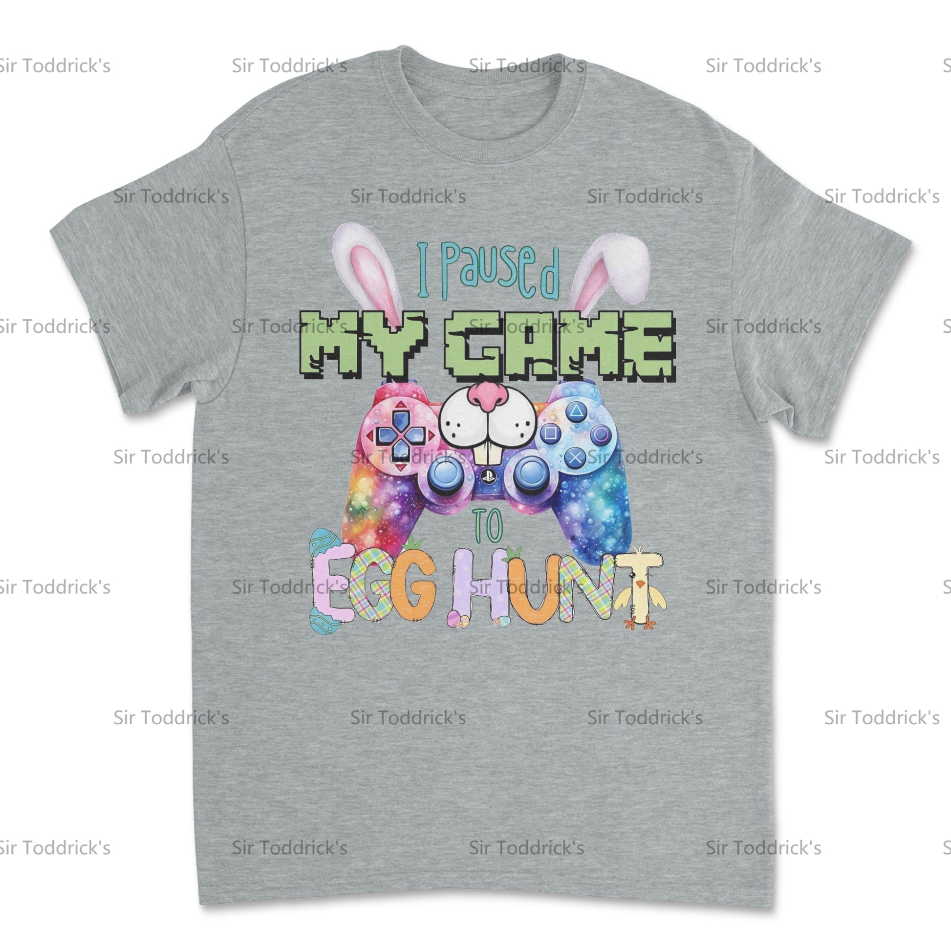 or the ultimate gamer who’s willing to take a break (just this once) for Easter fun! This "I Paused My Game to Egg Hunt" shirt is perfect for kids and adults who love gaming just as much as they love hunting for eggs. Featuring a fun mix of gaming graphics and Easter elements—like controllers, eggs, and bunny ears—this tee is a must-have for any gaming enthusiast celebrating the holiday. Level up your Easter style with this awesome design!