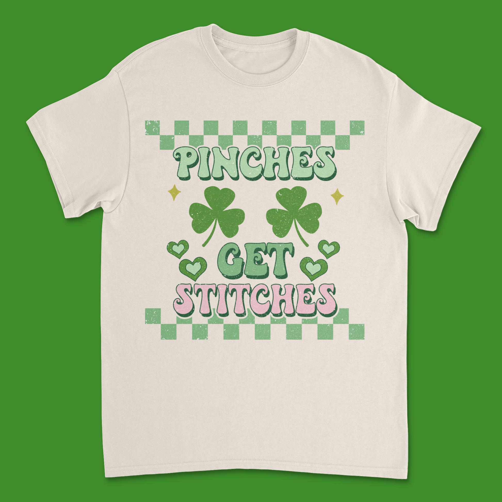 Make a bold statement this St. Patrick’s Day with our "Pinches Get Stitches" tee! 🍀😏 This fun and edgy design is perfect for those who take their green seriously and want to stay pinch-proof. Featuring bold lettering with festive shamrock accents, this shirt is great for St. Patrick’s Day parties, pub crawls, parades, and all your lucky celebrations.