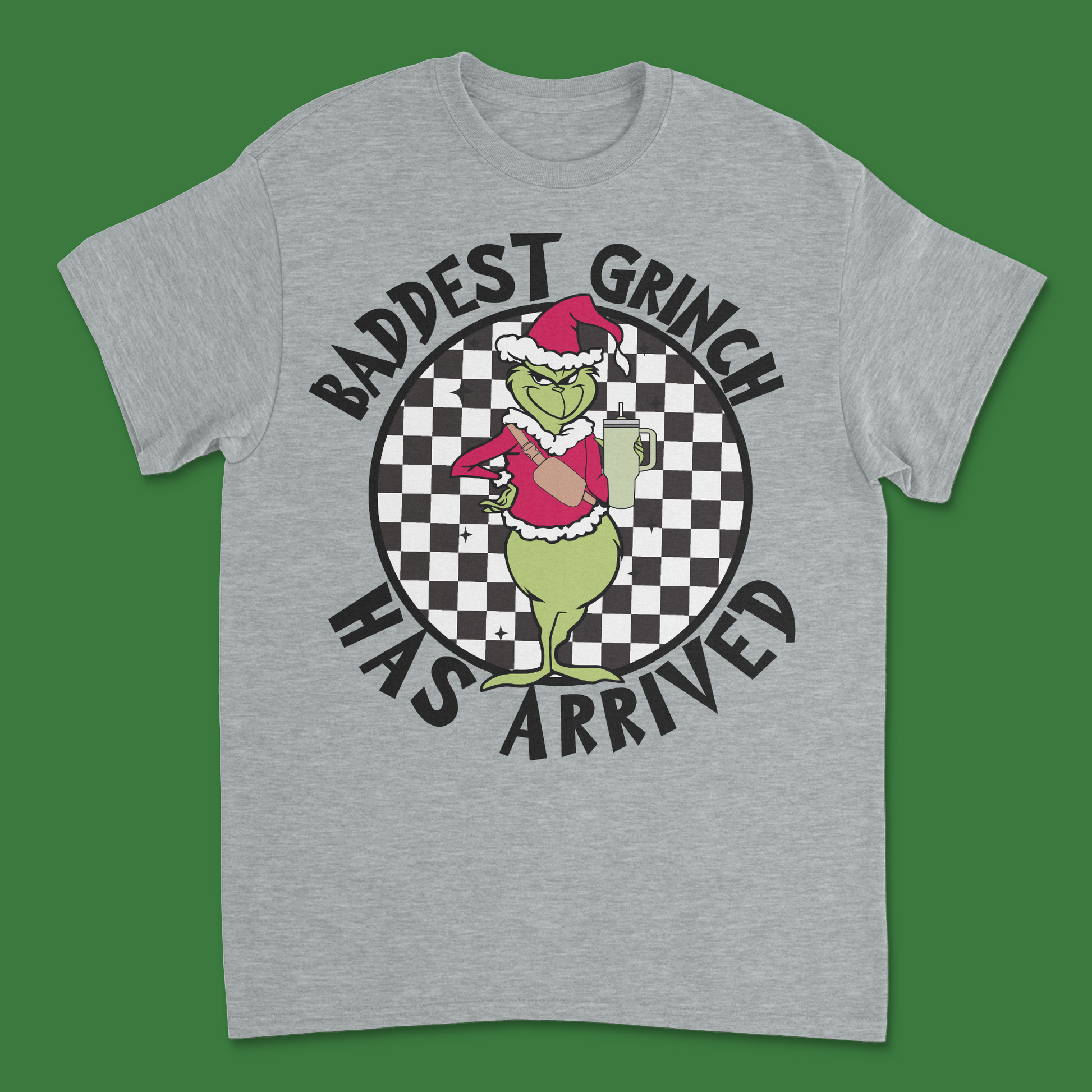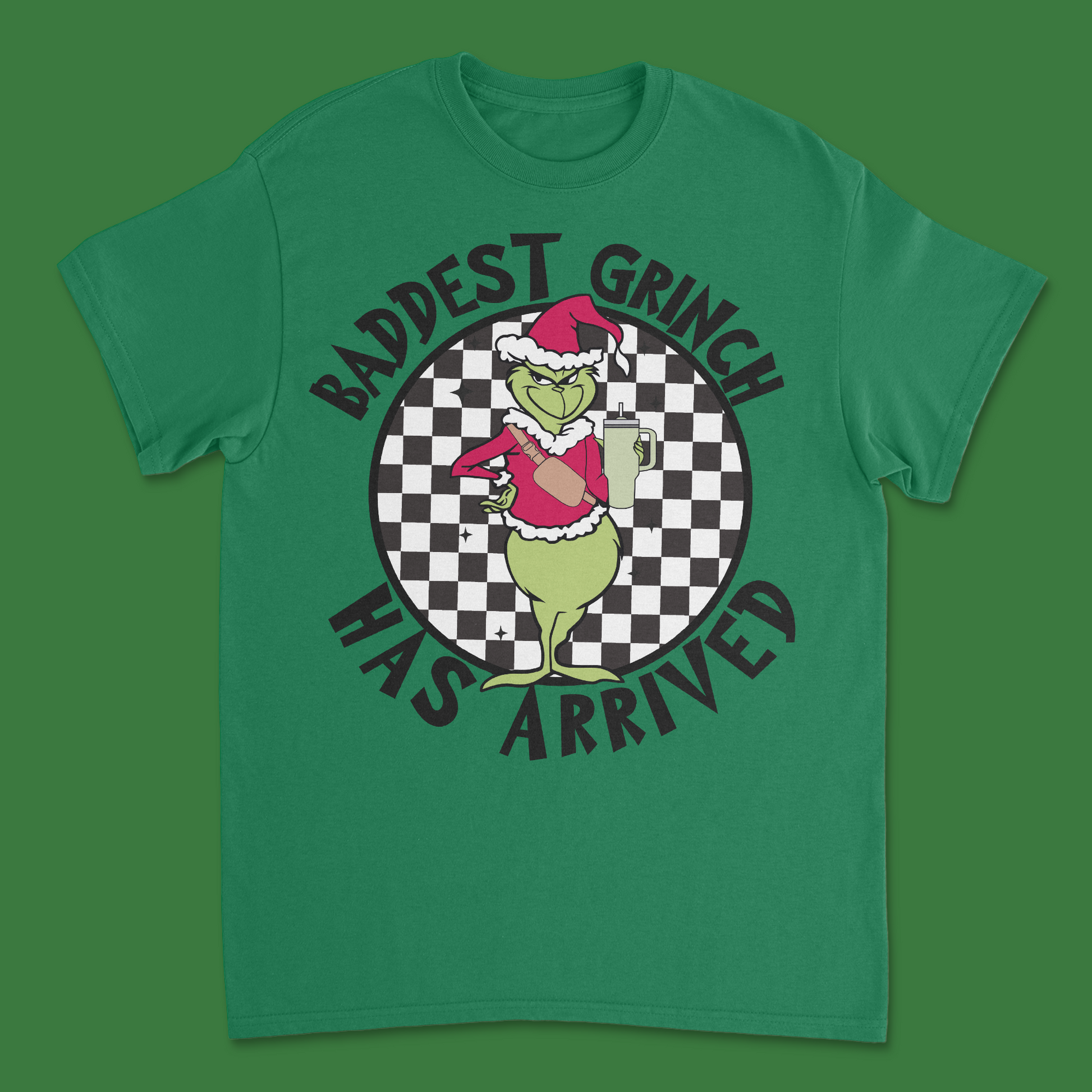 The Baddest Grinch Has Arrived T-Shirt - Bold and Playful Holiday Tee