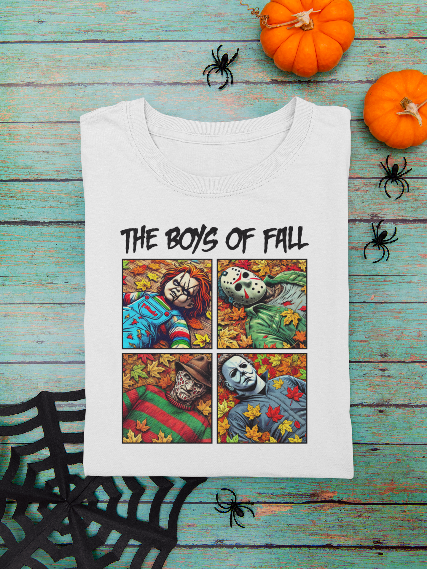 Whether you're trick-or-treating, attending a Halloween party, or simply embracing the spooky fall season, this 'The Boys of Fall' horror t-shirt is the perfect addition to your wardrobe. Wear your favorite villains with pride and make a statement this Halloween!