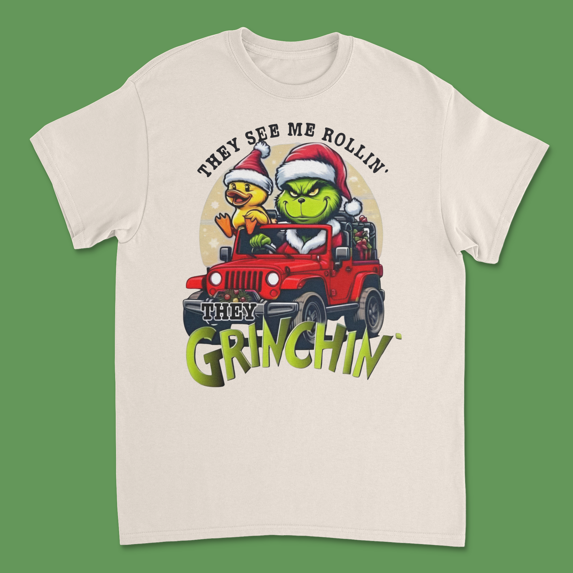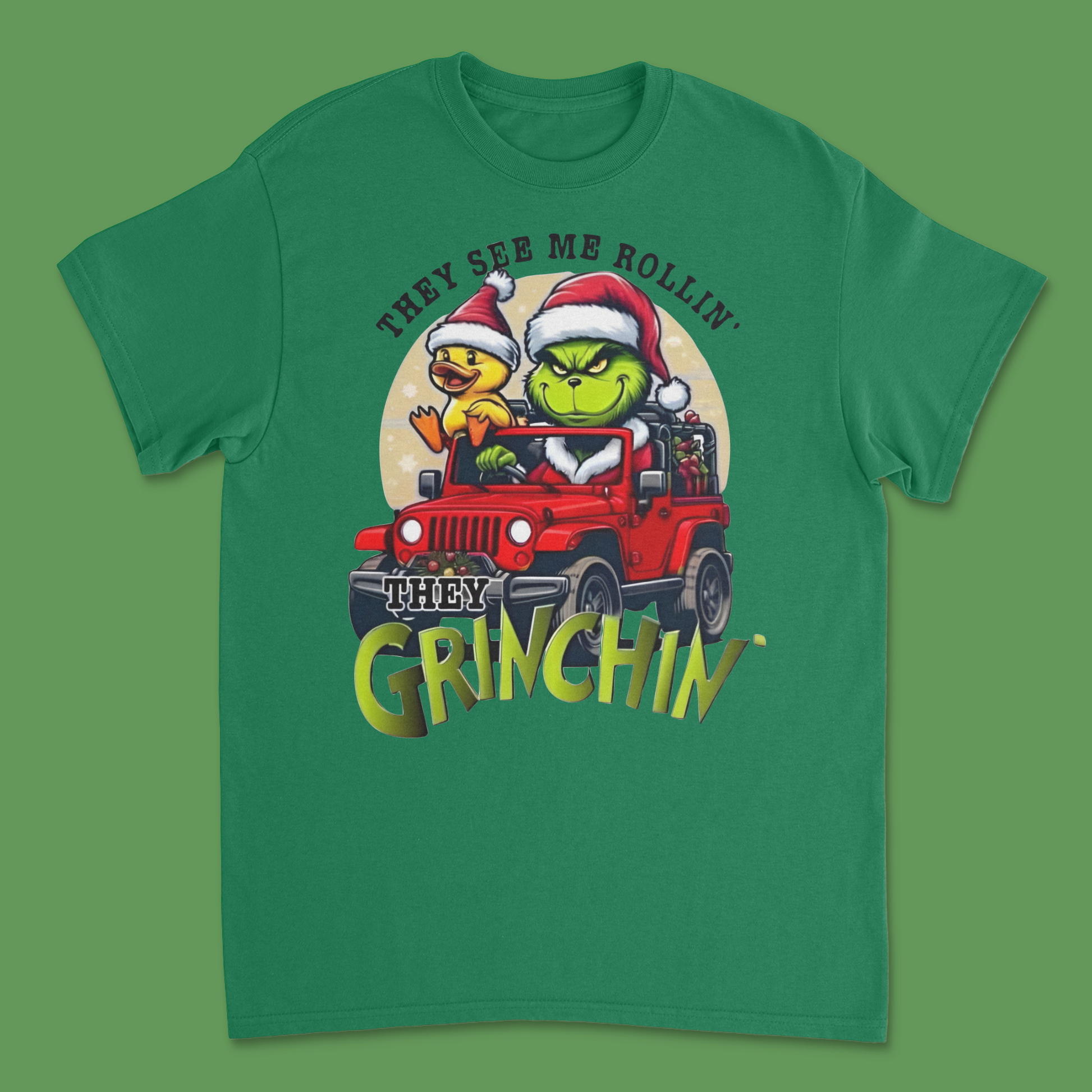 They See Me Rollin' and Grinchin' T-Shirt - Funny Grinch-Inspired Holiday Tee