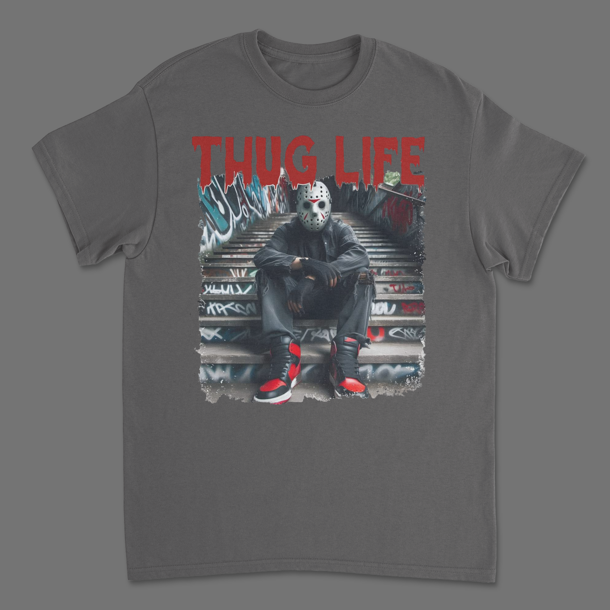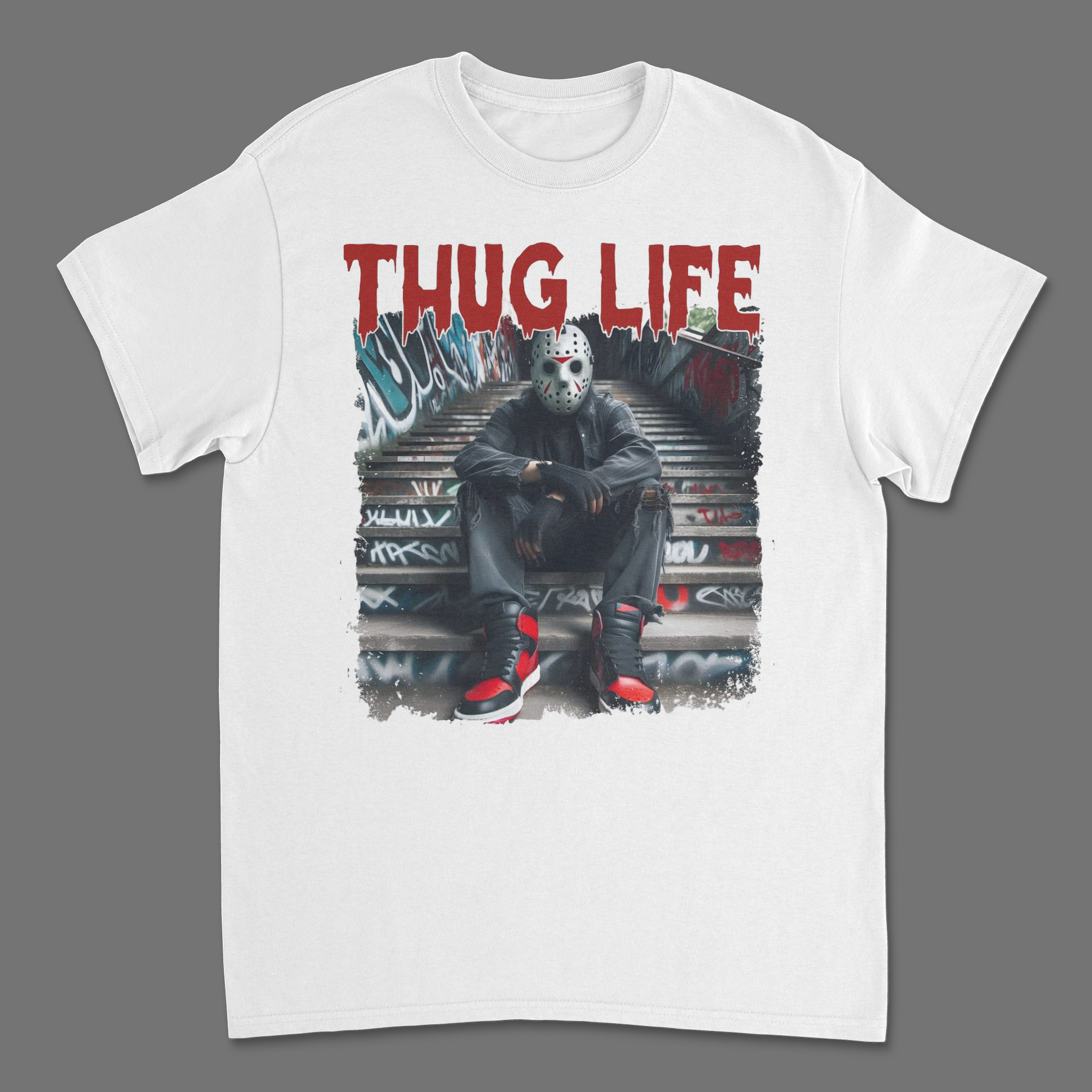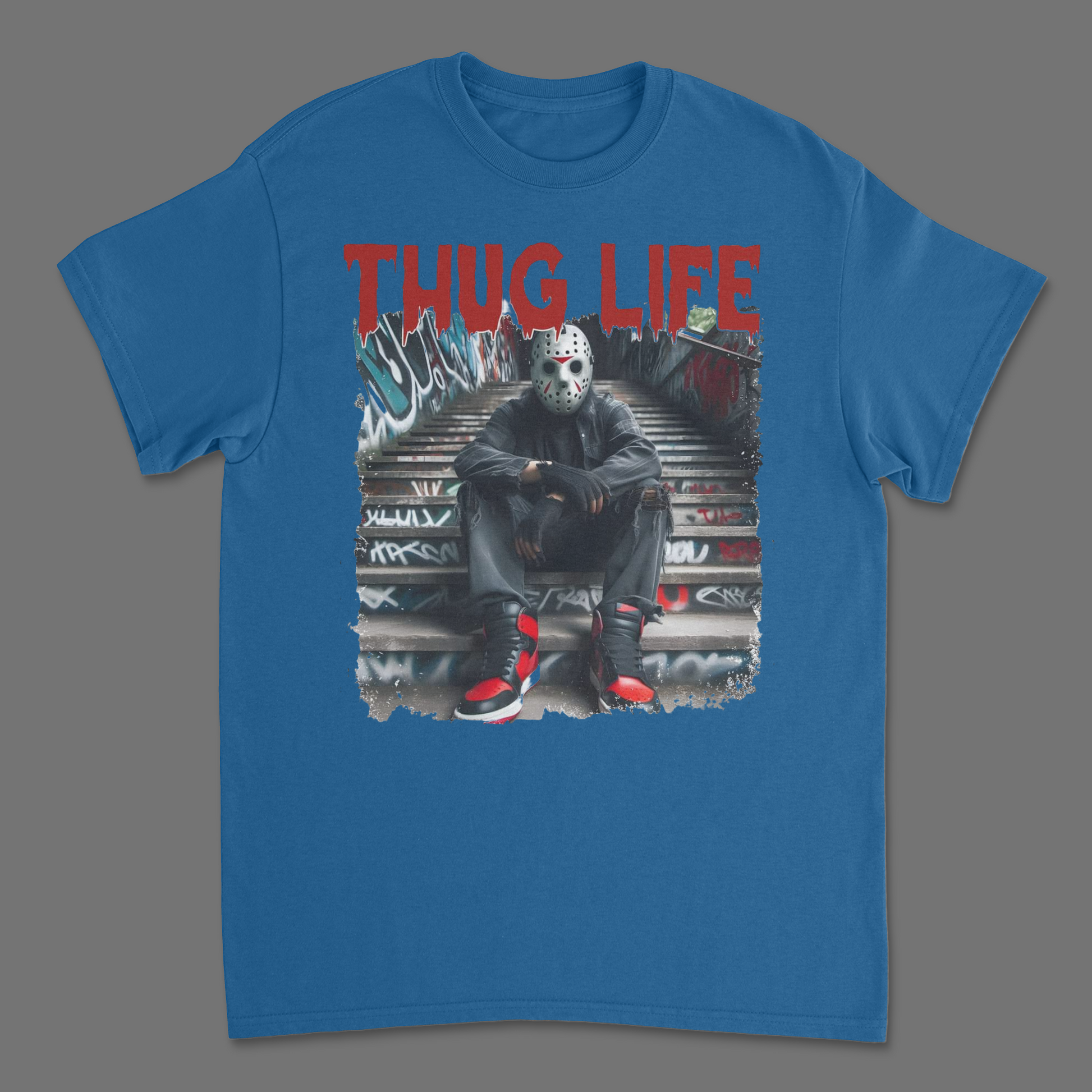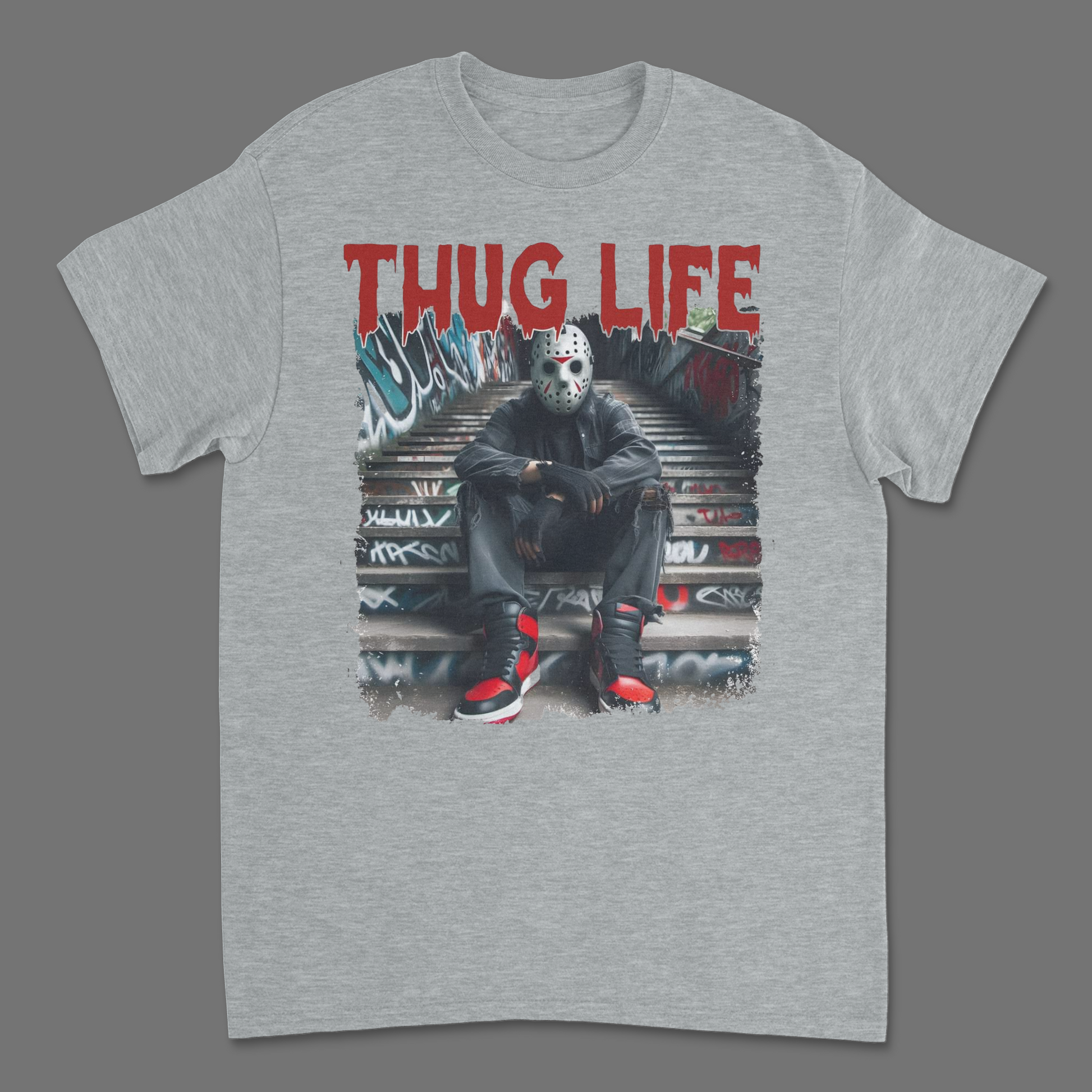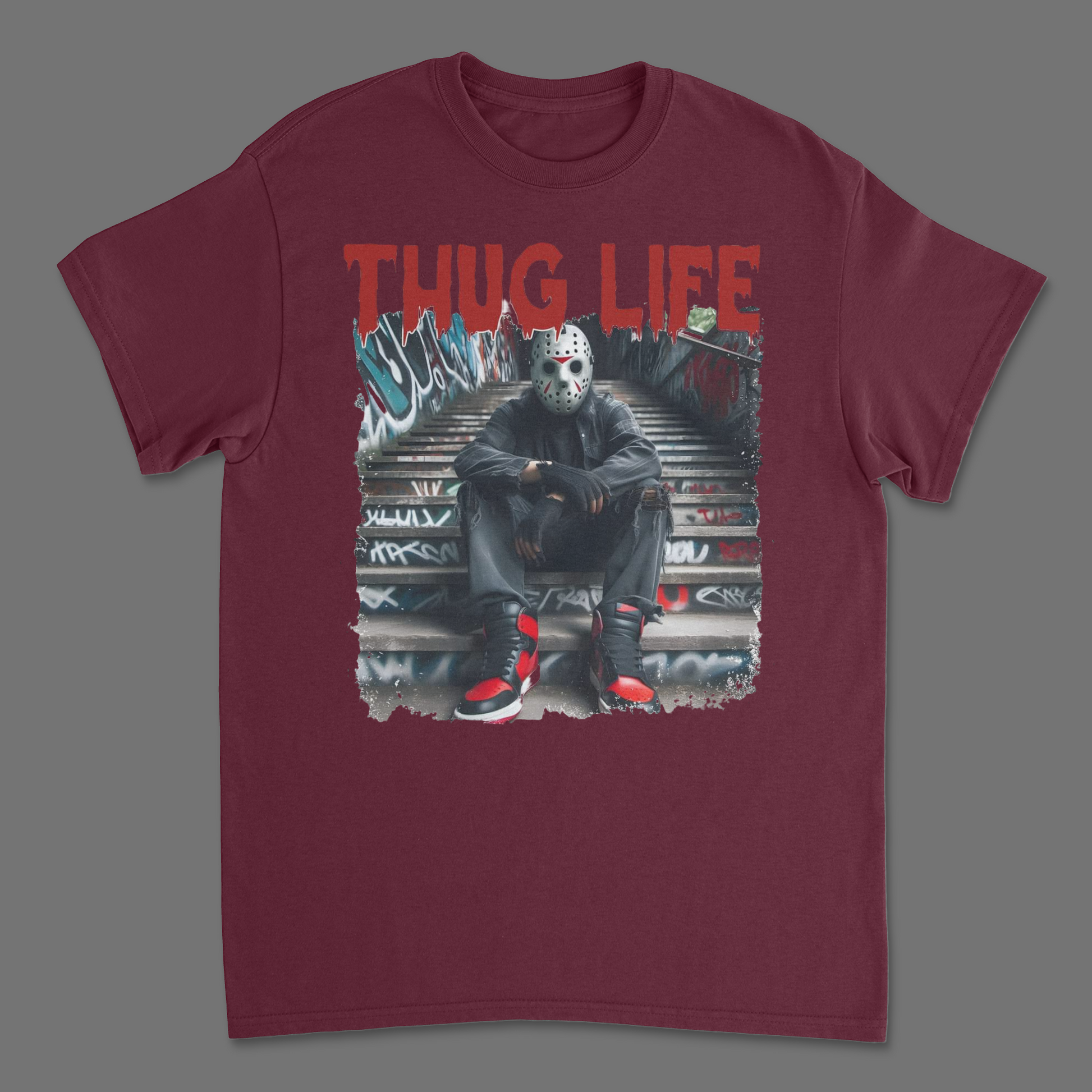 Wear this Jason Voorhees Thug Life T-Shirt and show the world that you don’t just survive – you thrive, Jason style. Whether you’re prowling the streets or hanging out at Camp Crystal Lake, this tee brings a killer combo of horror and urban fashion straight to your closet.