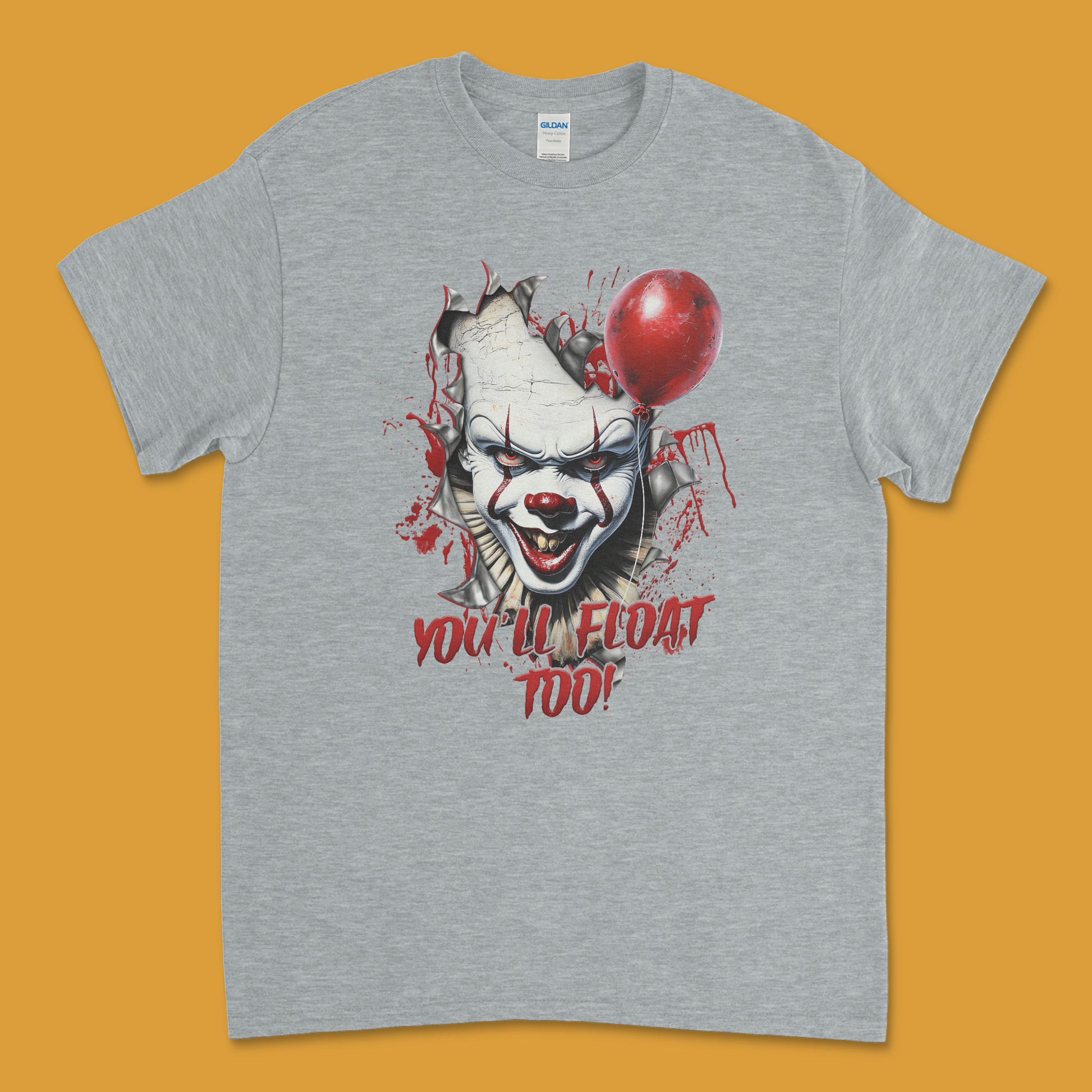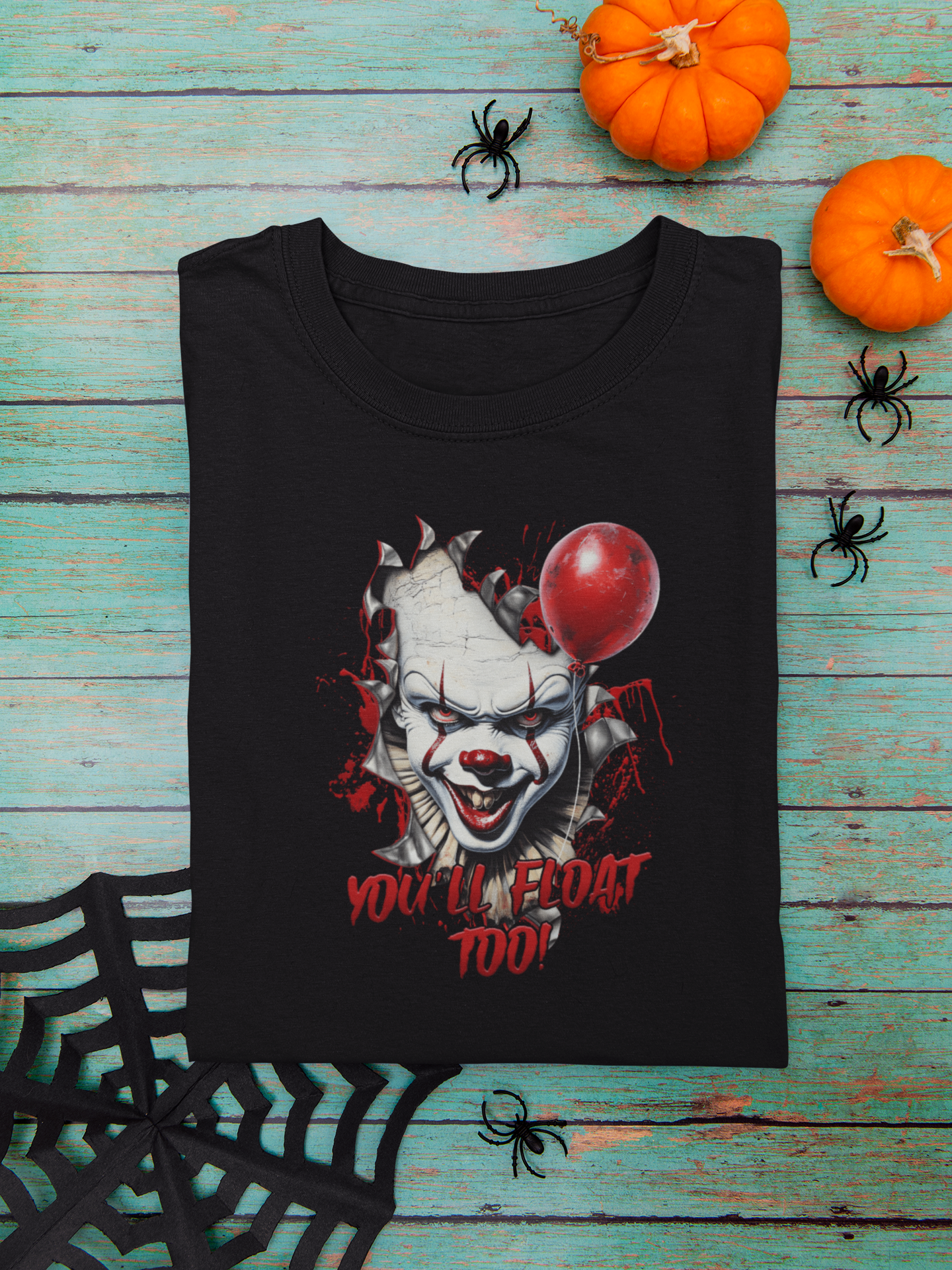 "You'll Float Too" Pennywise-Inspired Halloween T-Shirt | Creepy Clown Horror Tee